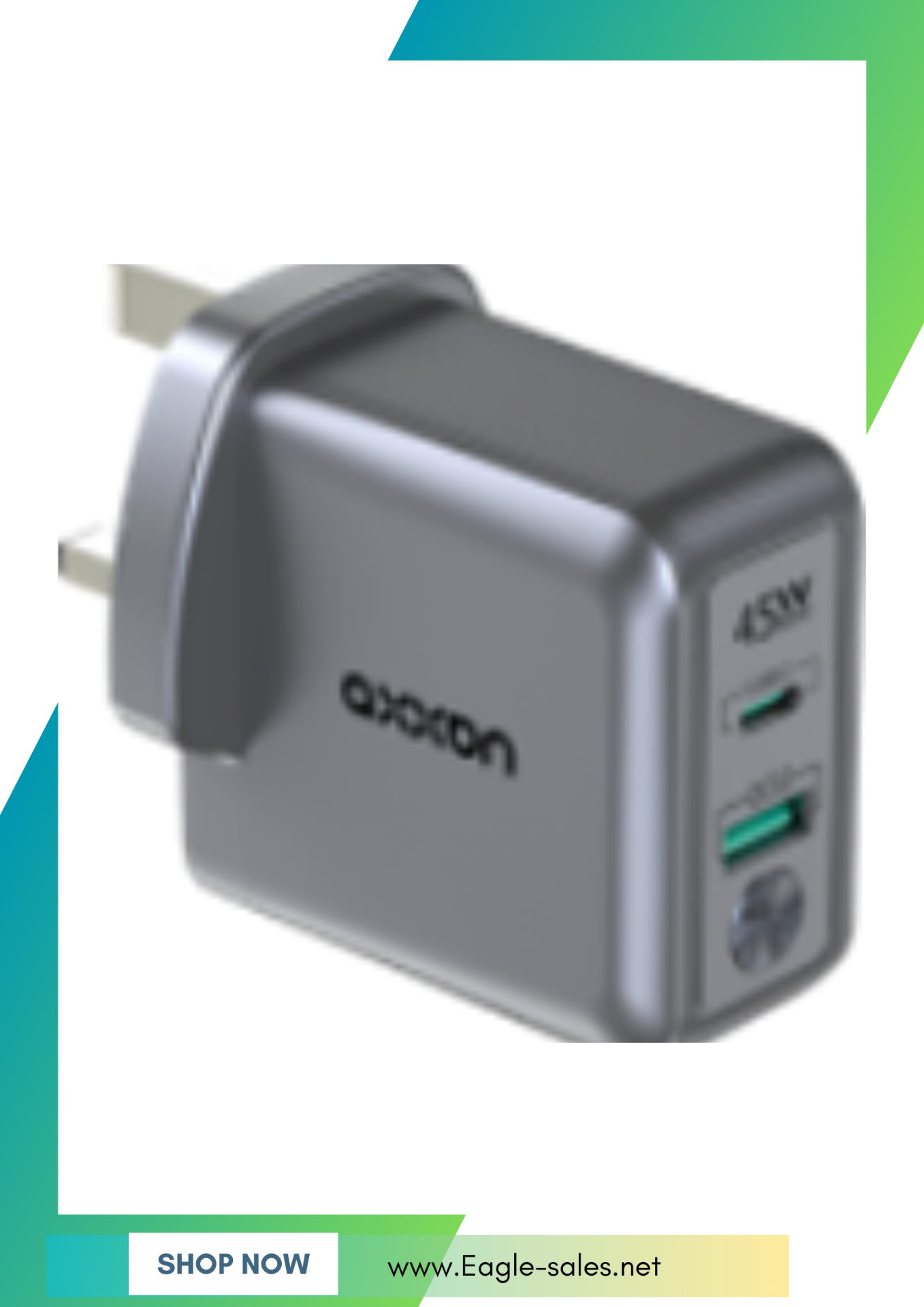 شاحن حائط سريع بمنفذ مزدوج USB-C و USB-A بقدرة 45 واط وتقنية PPS مناسب لجوالات سامسونج S24 الترا/S23 ايفون 15/16 بروماكس باقصى سرعه ٤٥ واط كاملة واجهزة اللابتوب وايفون وايباد وماك بوك رمادي فلكي